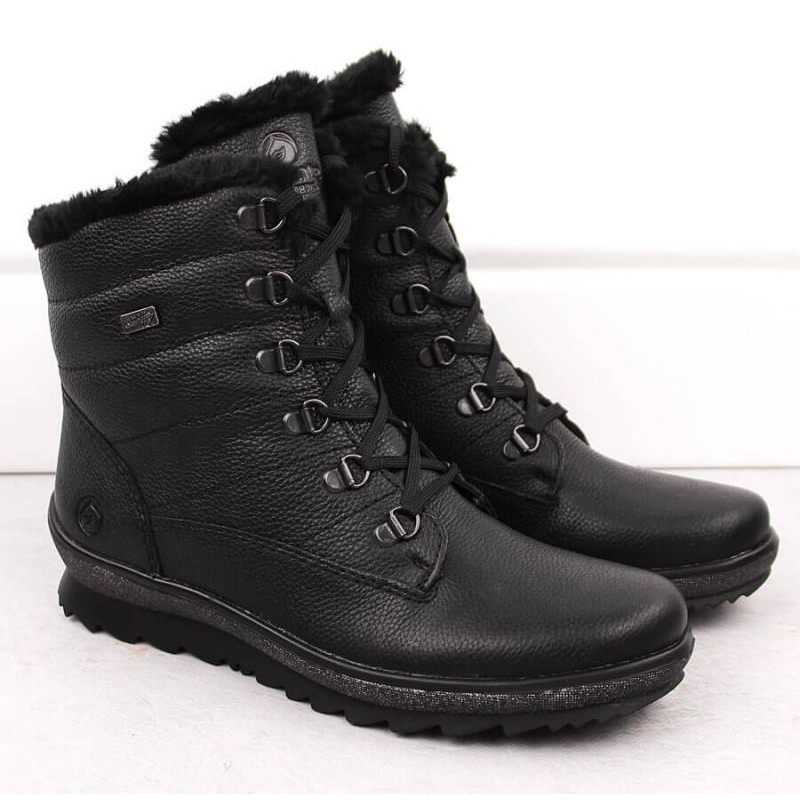 Yksityiskohdat: Rieker Remonte W RKR629B mustat nahkaeristetyt nilkkurit