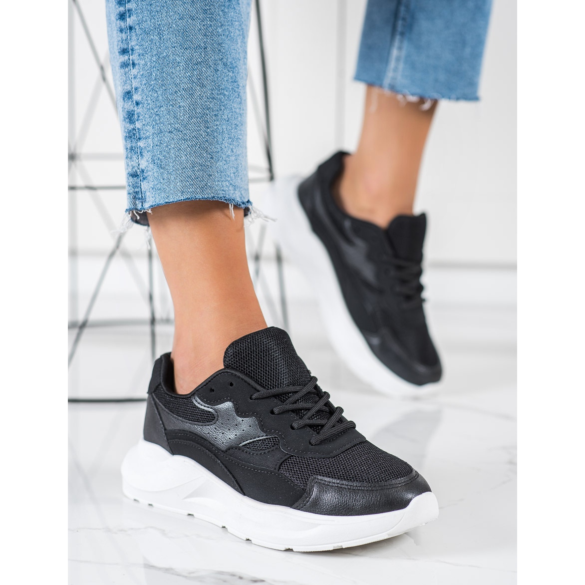 Näiden SHELOVETin tyylikkäiden mustien tennarien ansiosta luot ainutlaatuisia tyylejä, jotka herättävät huomion. Valitse kengät, joissa yhdistyvät urheilullinen tyyli, mukavuus ja yleismaailmallisuus - täydelliset kaikkina vuodenaikoina!