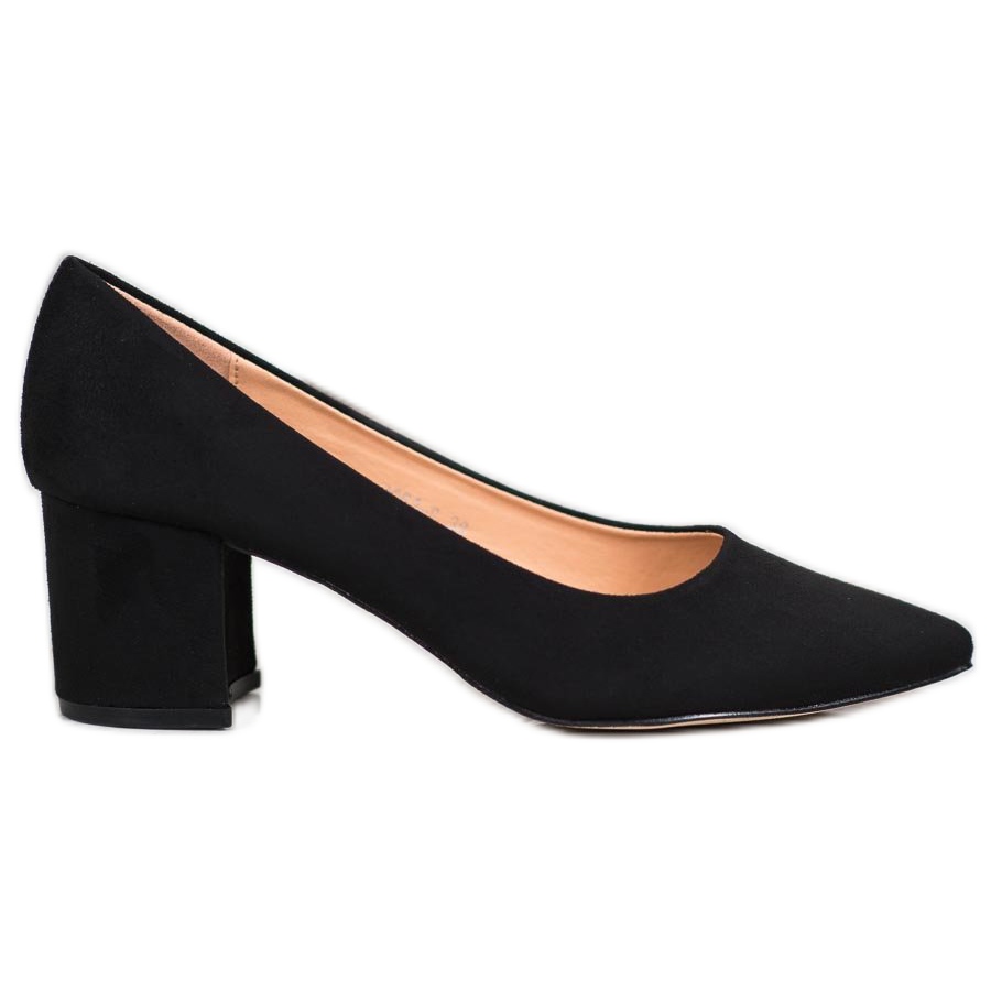 Pumpuissa on vakaa 6 cm korkea lohkokorko, mikä tekee niistä erittäin mukavat myös pitkiä aikoja kävellessä. Nämä kengät on valmistettu ekologisesta nahasta, ja niissä on mokkanahka, ja niissä yhdistyy eleganssi ja ympäristöystävällinen lähestymistapa. Terävä kärki antaa niille modernin luonteen, ja liukukiinnitys tekee niistä erittäin helpot pukea ja riisua.