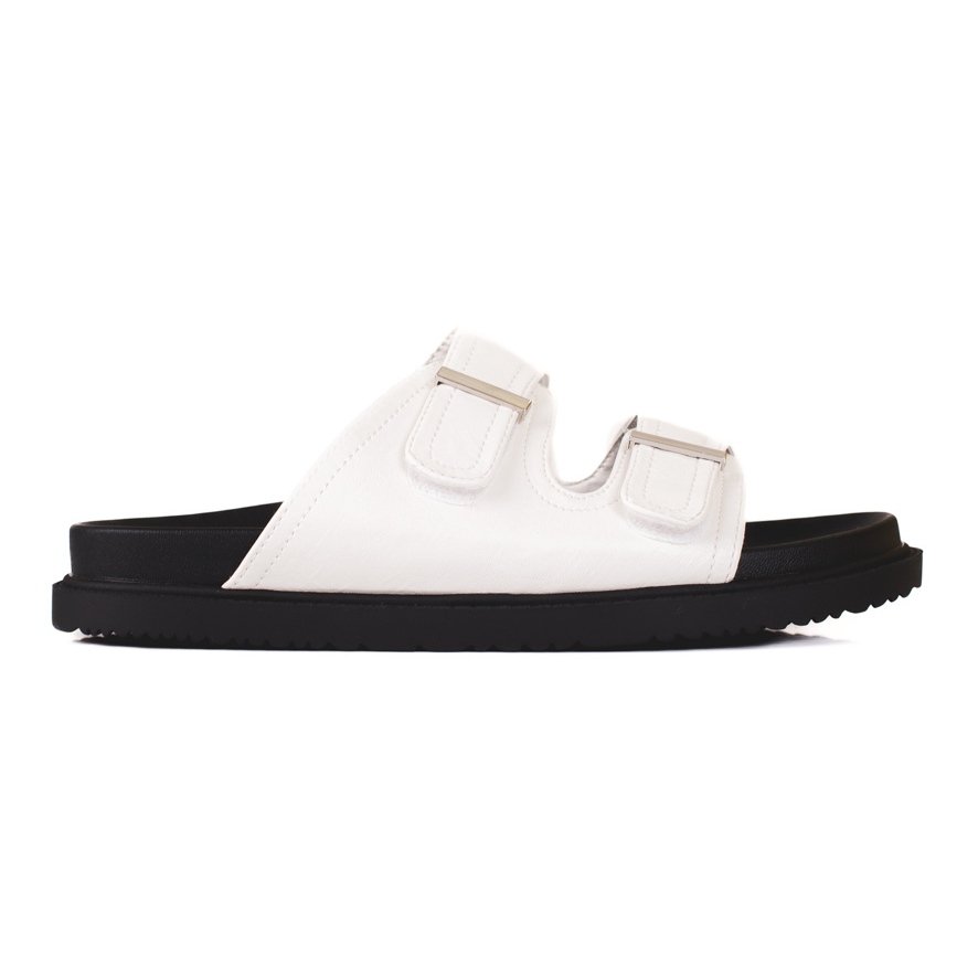 Muovista valmistettu kulutuspinnalla varustettu pohja takaa riittävän pidon ja kestävyyden, mikä tekee niistä luotettavan valinnan jokapäiväiseen käyttöön. Lisäetuna on musta pohja, joka on täydellisessä kontrastissa varvastossojen valkoisen värin kanssa ja lisää niihin muodikkaasti.