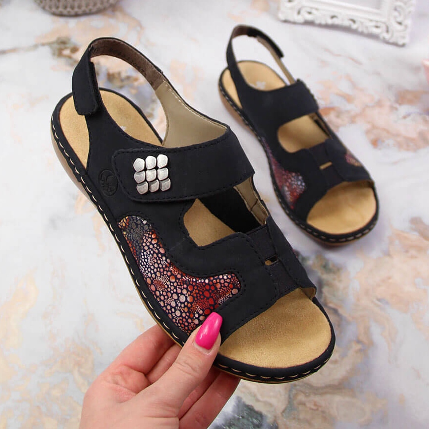 Naisten laivastonsiniset Velcro-sandaalit Rieker 65989-14 ovat täydellinen valinta jokaiselle mukavuutta ja tyyliä arvostavalle naiselle. Tunnettu saksalainen valmistaja, korkealaatuisten jalkineiden valmistaja RIEKER-brändi tarjoaa mallin, jossa yhdistyvät keveys, joustavuus ja eleganssi.