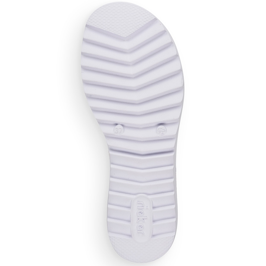 Sandaalien pohjan paksuus on 3 cm ja 5 cm korkea kiila korostaa koko mallin eleganssia. Slip-on-kiinnitys tekee kenkien pukemisesta ja riisumisesta erittäin helppoa. Rieker-tuotteilla on 24 kuukauden takuu ja ne toimitetaan valmistajan alkuperäisessä pakkauksessa.