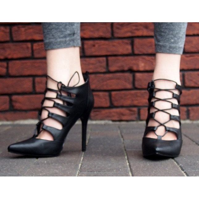 Tyylikäs muotoilu teräväkärkisellä kärjellä täydentää kokonaisuutta, ja synteettisestä materiaalista valmistettu musta pohja varmistaa mukavuuden ja vakauden käytön aikana. Sisällä on ekologisesta nahasta valmistettu pohjallinen, joka tekee sandaaleista paitsi kauniit myös mukavat.