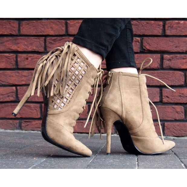 Tämä malli täydentää täydellisesti boho-tyyliä, mutta sopii myös täydellisesti erilaisiin rentoihin yhdistelmiin. Valmistettu ekologisesta mokkanahkasta ja viimeistelty nahkasisäkkeellä, ne tarjoavat mukavuutta jokaisessa vaiheessa. Lisäksi vetoketju helpottaa pukemista ja terävä kärki lisää eleganssia.