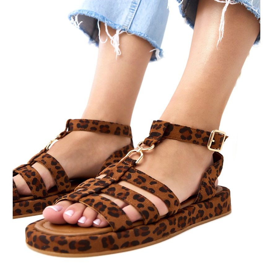 Nargiz -sandaaleilla on pyöreä nenä ja 3 cm korkea alusta, mikä tekee niistä paitsi tyylikkäät, myös mukavat päivittäin. Heidän ruskea muovinen pohja harmonisoituu muodikkaalla leopardikuviolla, mikä lisää ainutlaatuisen hahmon jokaisen kesän muotoiluun.