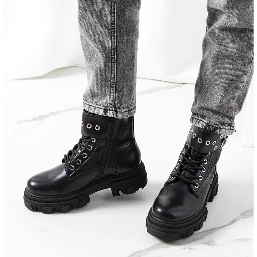 Musta Rubeo saappaat ansaan pohjalla - täydellinen, kun haluat lisätä kynsityylin. Vahva, traktorin pohja antaa heille raa'an hahmon, ja aukiot ja suihkukoneet lisäävät rock -tyyliä. Korkean laadun ekologisesta nahasta valmistettu ylempi varmistaa esteettisen ulkonäön ja kestävyyden, kun taas ekologisen nahan insertti takaa myös mukavuuden.