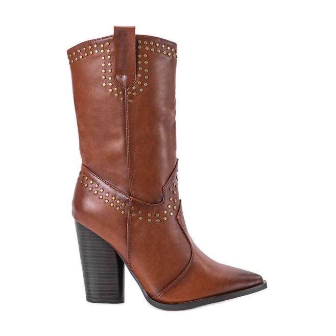 Yksityiskohdat: Ruskeat cowboy -saappaat, joissa on koristeltu Bora -päällinen