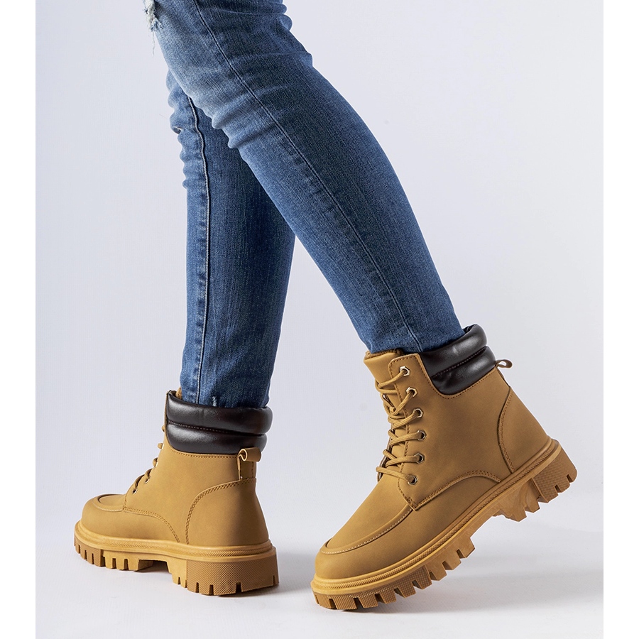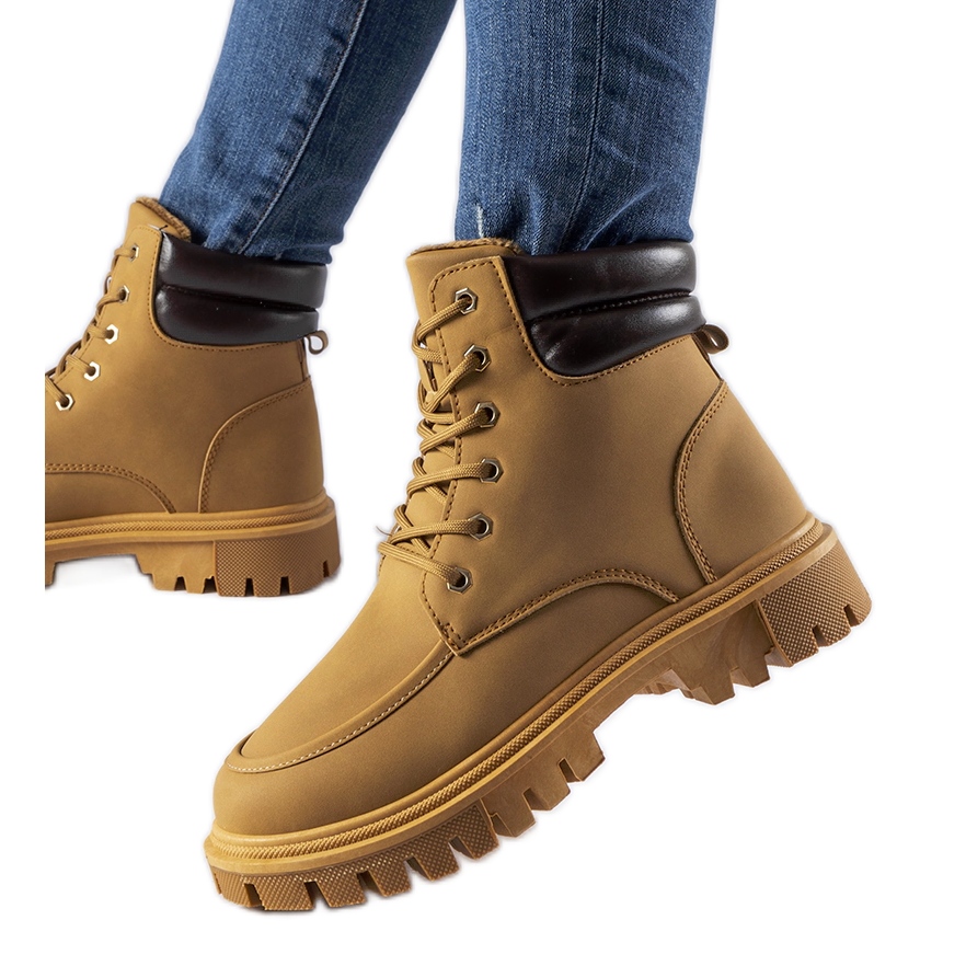 Tyylikkäät ja käytännölliset Conroe -työntekijät ovat täydellinen valinta viileämpiin päiviin. Kamelin ekologisesta nahasta valmistettu mattapinta ja sisäpuolella ne yhdistävät muodikkaan ilmeen mukavuuteen. Korkea nilkka, nauhoitettu ja asetettu 4 cm: n alustalle - anna hahmolle hahmo, ja pyöristetty nenä korostaa modernia tyyliä.