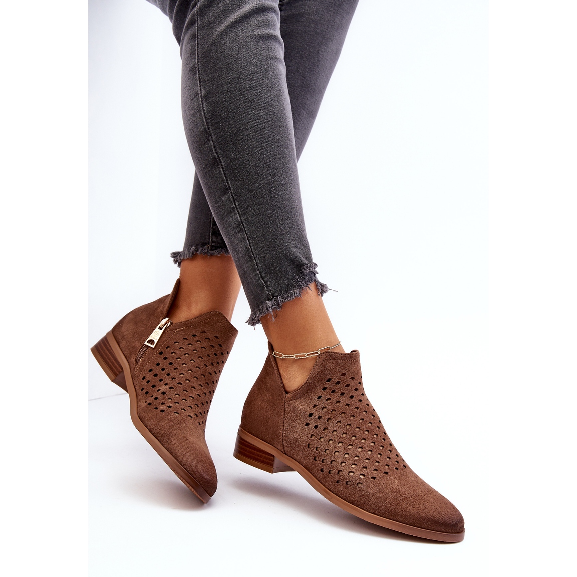 Löydä Vincezan ainutlaatuiset Janetris naisten matalat saappaat, jotka ovat täydellinen lisä vaatekaappiisi kaikkiin tilaisuuksiin. Nämä korkealaatuisesta ekologisesta mokkanahasta valmistetut saappaat valloittavat harjakattoisella muotoilullaan, joka lisää tyyliin hienovaraisen, elegantin korostuksen. Ruskean värinsä ansiosta ne on helppo yhdistää erilaisiin asuihin - arkisista muodollisempiin.