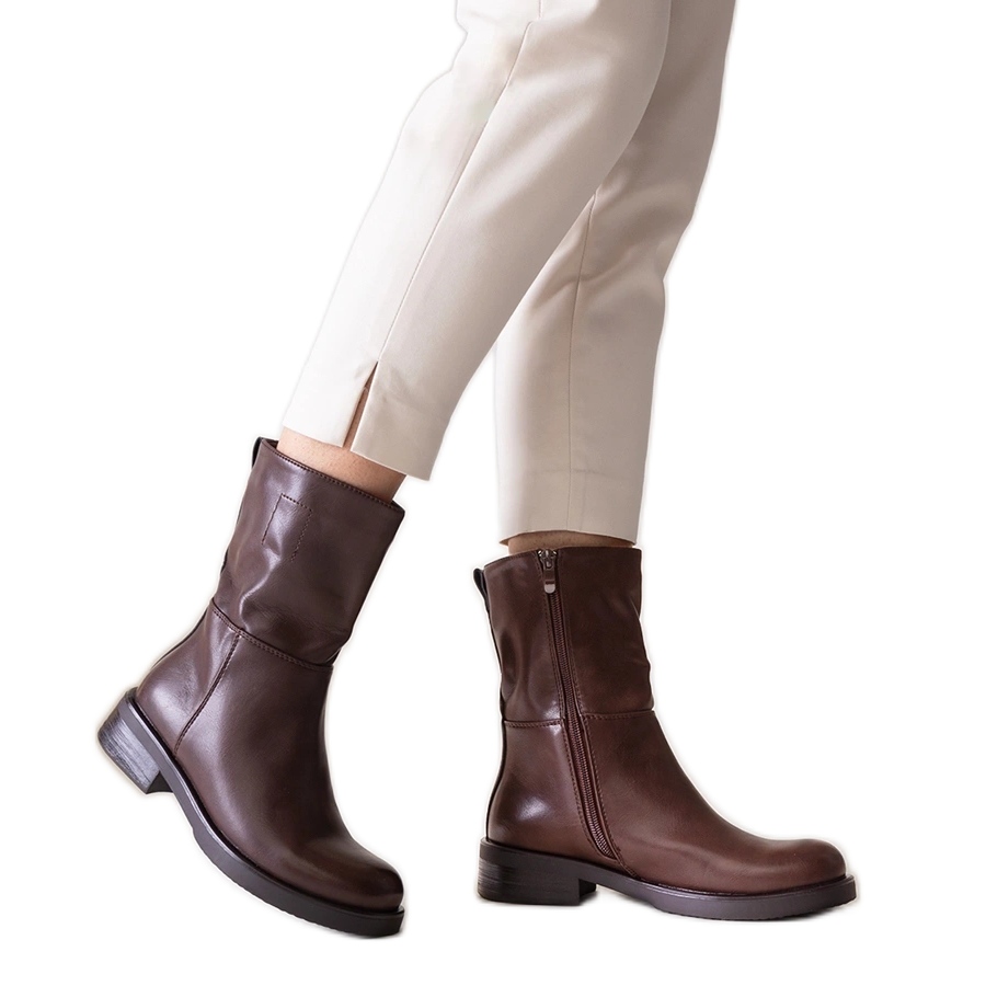 Brown Classic Eco Boots Atyna ovat loistava valinta jokaiselle naiselle, joka etsii tyylikkäitä jalkineita viileämpiä päivinä. Korkealaatuisesta orgaanisesta nahasta valmistettua saappaat yhdistävät tyylikkyyden toiminnallisuuteen, joka sopii mieluiten syksyn ja talven tyyliin. Pyöreä nenä antaa heille modernin hahmon, ja tasainen kantapää, jonka korkeus on 3,5 cm, tarjoaa mukavuutta jopa pitkien kävelyretkien aikana.