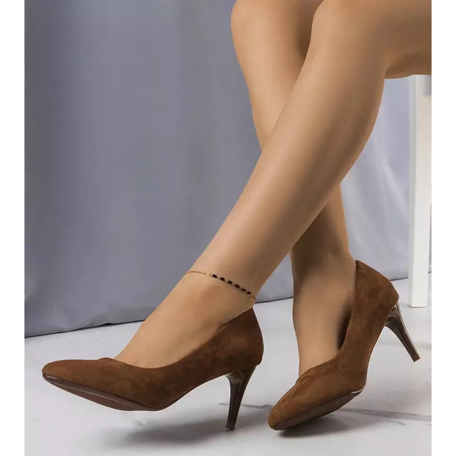 Tyylikkäät ja elegantit ruskeat Amille-stiletto-pumput ovat täydellinen lisä minkä tahansa naisen vaatekaappiin. PA1-mallille, joka on merkitty numerolla YES-2888-2, on tunnusomaista klassinen muotoilu ja korkea laatu. Valmistettu ekologisesta mokkanahasta, ne takaavat käyttömukavuuden, ja mantelivarvas lisää hienovaraisuutta.