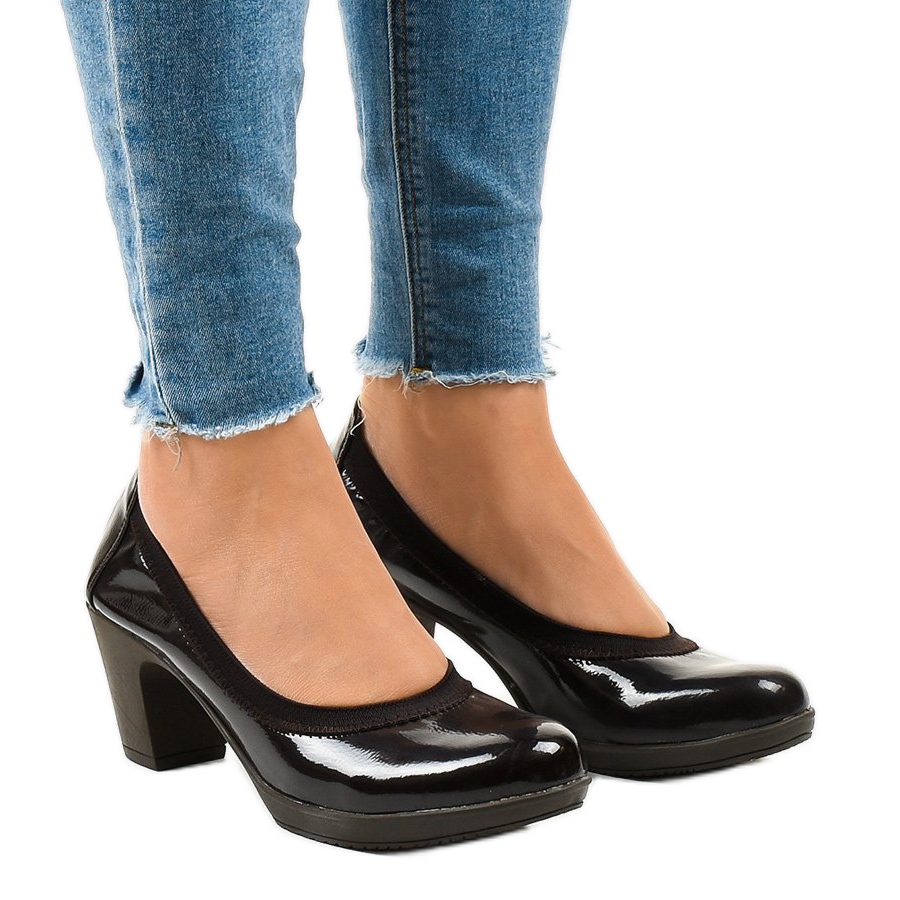 Ruskeat patentoidut kantapääpumput 579-2 ovat tyylikäs tarjous jokaiselle naiselle, joka arvostaa tyylin ja mukavuuden yhdistelmää. Näille naisten kengille on ominaista klassinen, pyöreä kärki ja siisti muotoilu, joka sopii täydellisesti tämän hetken muotitrendeihin.