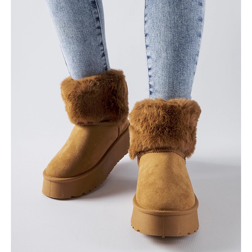 Ruskeat lumikengät, jotka on koristeltu turkista Adelphia - tyyli ja lämmin talveksi