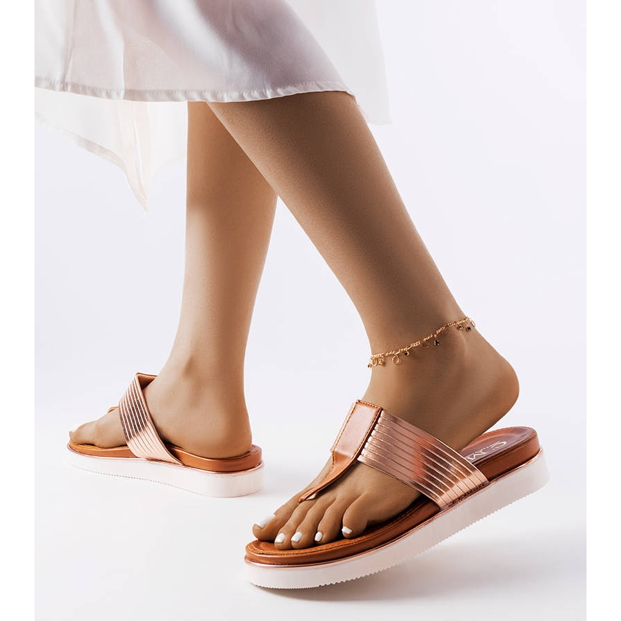 Varvastossojen väreissä yhdistyvät ruskean ja kullan sävyt, minkä ansiosta ne on helppo sovittaa eri tyyleihin. Huolimatta nenän puutteesta, ne säilyttävät tyylikkään luonteen, joka on täydellinen sekä rannalle että kävelylle ympäri kaupunkia.