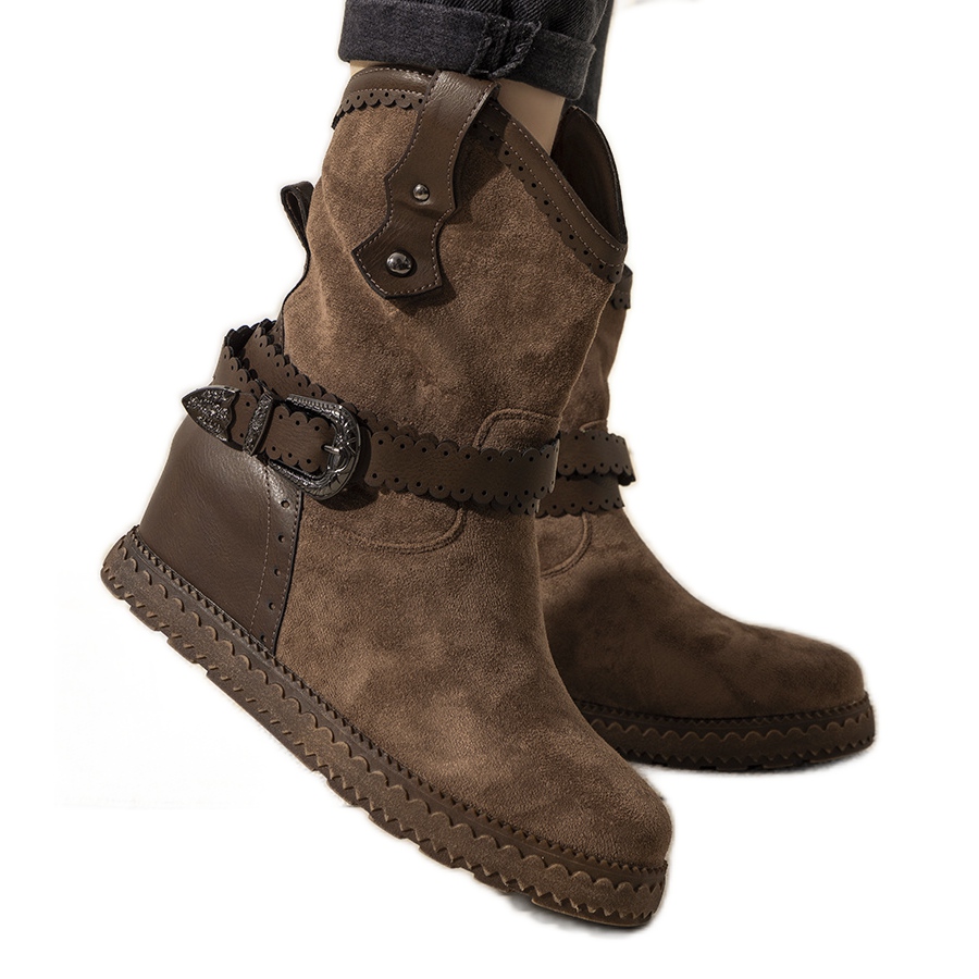 Inna marka Ruskeat naisten saappaat, joissa eristys Sherry-kiilassa