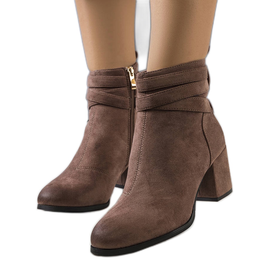 Klassiset Fletcher-saappaat ovat tyylikäs ja käytännöllinen täydennys syksyn talvityylille. Valmistettu ekologisesta mokkanahasta taupe -varjossa, upotettu mukavaan, matalaan pylvään (6 cm). Yläjoukko ulottuu hiukan nilkan (korkeus noin 19 cm) - vetoketjun sisäpuolella on helpompaa laittaa ja koristeiden ulkopuolelle samasta materiaalista lisää merkkiä. Hieman eristetty sisustus tarjoaa mukavuutta viileämpinä päivinä.