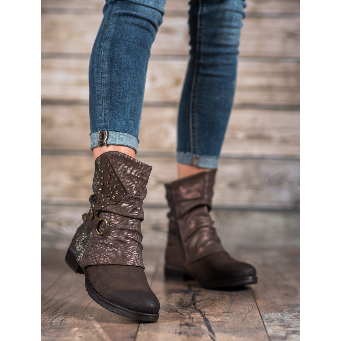 Esittelemme Super Me -brändin tyylikkäät ja tyylikkäät ruskeat bikerit, jotka täydentävät täydellisesti jokaisen naisen vaatekaappia. Näille ainutlaatuisille saappaille on ominaista epätavallinen yhdistelmä materiaaleja ja erilaisia tekstuureja, mikä tekee niistä alkuperäisen lisäyksen moniin tyyleihin.