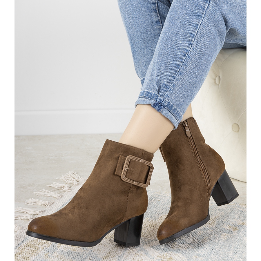 Ruskeat Carrillon korkeakorkoiset nilkkurit ovat erittäin tyylikäs ja mukava valinta tulevaan kauteen. Laadukkaasta ekologisesta mokkanahkasta valmistetut tyylikkäät kengät, joissa on herkkiä hankausta, herättävät varmasti huomion.