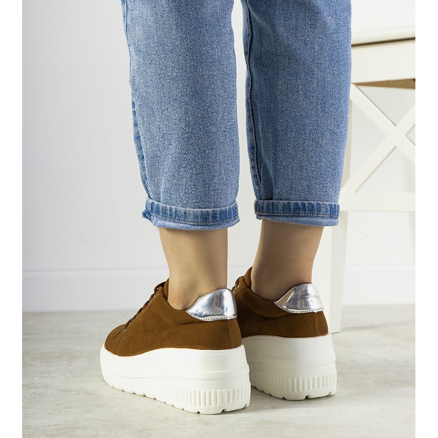 Yksityiskohdat: Ruskeat urheilukengät, joissa korkea Rapter -pohja