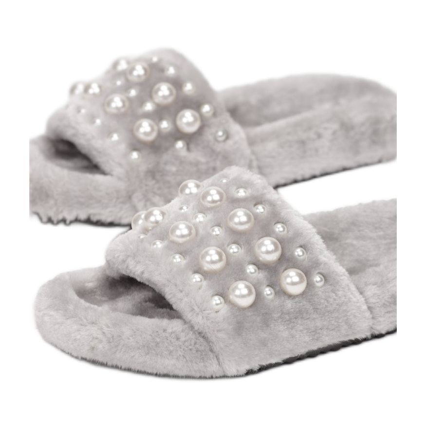 Malli MULANKA-2177-39 on koristeltu hienovaraisella turkiksella, joka lisää viihtyisyyttä ja eleganssia. Lisäksi varvastossut on koristeltu helmillä, mikä antaa niille ainutlaatuisen luonteen, joka sopii täydellisesti erilaisiin tyyleihin. Harmaan värin ansiosta ne sopivat moniin sarjoihin, sekä rennon että tyylikkään.