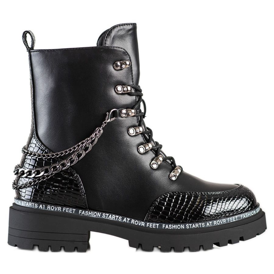 Valmistettu korkealaatuisesta ekologisesta nahasta, niille on ominaista vankka ja tyylikäs ulkonäkö. Koristeketju antaa niille ainutlaatuisen korostuksen, joka vangitsee katseen. Työntekijöillä on vetoketju ja nyöritys, mikä varmistaa täydellisen istuvuuden jalkaan. Sisäänrakennettu, jäykistetty kantapää lisää lisäksi käyttömukavuutta ja eristys pitää jalat lämpiminä myös kylminä päivinä.
