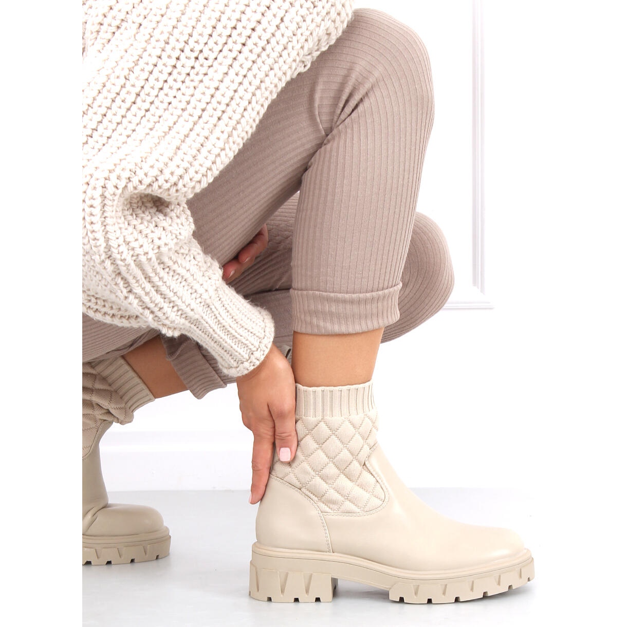 Yksityiskohdat: Saappaat, joissa tikattu yläosa Elin Beige