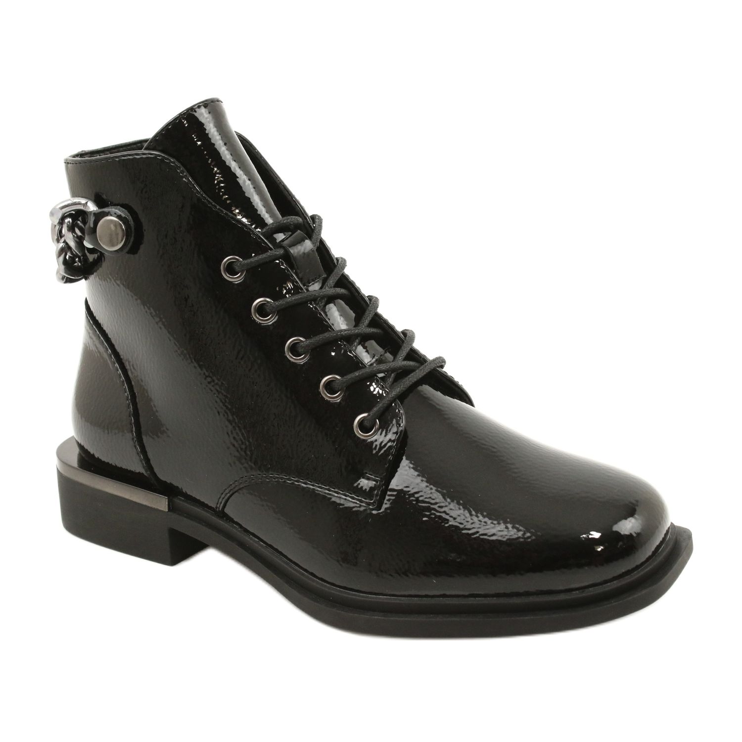 Mustat Sergio Leone BT405 -ketjusaappaat ovat täydellinen valinta kaikille naisille, jotka haluavat yhdistää muodikkaan tyylin käyttömukavuuteen. Laadukkaasta kiiltonahasta valmistetut kengät eivät vain näytä tyylikkäiltä, vaan myös takaavat kestävyyden. Vetoketjukiinnitys ja lisänauhat mahdollistavat tarkan säätämisen jalkaan, mikä tekee niistä ihanteellisen ratkaisun jokapäiväiseen muotoiluun.