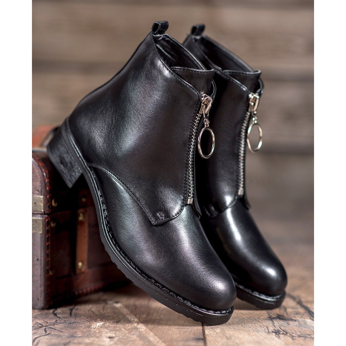 Löydä eleganssia ja mukavuutta joka päivä Seastar-nilkkurien ansiosta, joissa on koristeellinen vetoketju klassisessa mustassa värissä. Nämä tyylikkäät korkealaatuisesta ekologisesta nahasta valmistetut saappaat halaavat jalkojasi ja tekevät jokaisesta askeleesta nautinnon. Nilkan yläpuolelle ulottuvat päälliset eivät vain korosta vartaloa, vaan myös suojaavat tehokkaasti kylmältä syksyllä ja talvella.