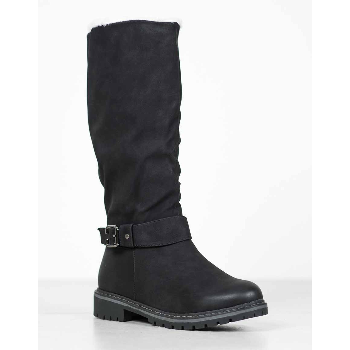 Saappaan klassinen leikkaus, joka ulottuu pohkeen keskelle, tekee näistä kengistä täydellisesti yhteensopivia moneen tyyliin - niin housuihin, hameisiin kuin mekoihinkin. Oikein suunniteltu synteettisestä materiaalista valmistettu pohja varmistaa mukavuuden ja vakauden kävellessä. Lisäksi litteä 3 cm korkea kantapää tekee saappaista mukavat myös pitkäaikaisen käytön jälkeen.