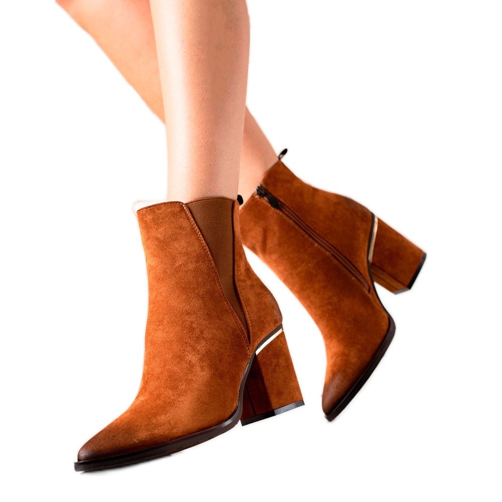 Tutustu tunnetun valmistajan W. Potockin leveäkorkoisten nilkkurien tarjoamaan eleganssiin ja mukavuuteen. Nämä korkealaatuisesta ekologisesta mokkanahasta valmistetut ruskeat saappaat ovat täydellinen valinta tulevaan syys- ja talvikauteen. Jäykistetyn kantapään ja lämpimän huopaosan ansiosta jalkasi ovat aina mukavasti käärittynä sääolosuhteista riippumatta.