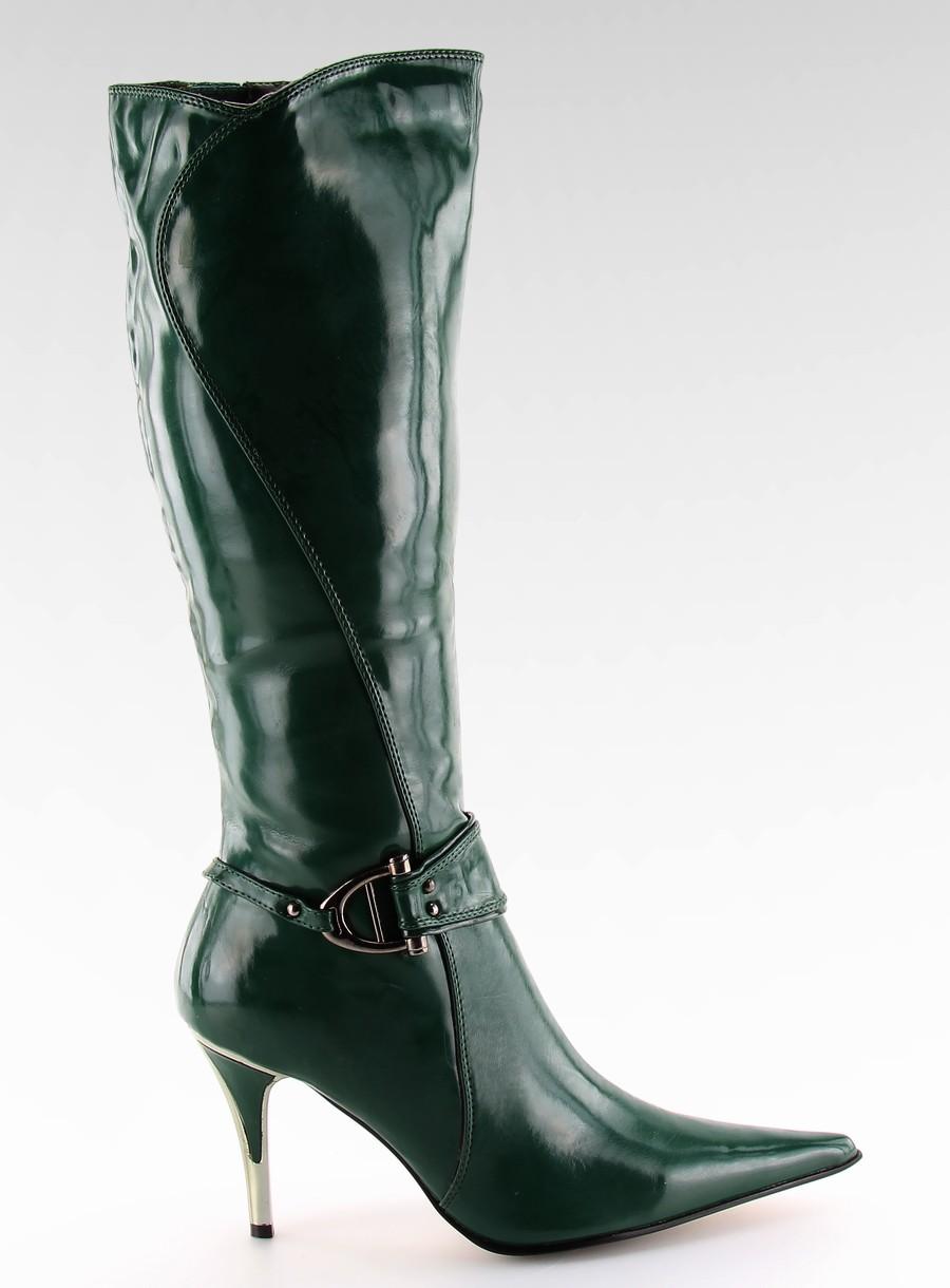 Tyylikkäät, naiselliset saappaat, jotka on lakattu intensiiviseen vihreän sävyyn. Malli 5137-73V on ajaton polvipituinen leikkaus klassisella, kapealla 9 cm korkealla stilettolla, joka hoikentaa vartaloa ja lisää useita senttejä itseluottamusta. Sileä, kiiltävä pinta antaa tyylille tyylikkään luonteen, ja huomaamaton vetoketju helpottaa pukemista ja varmistaa täydellisen istuvuuden.
