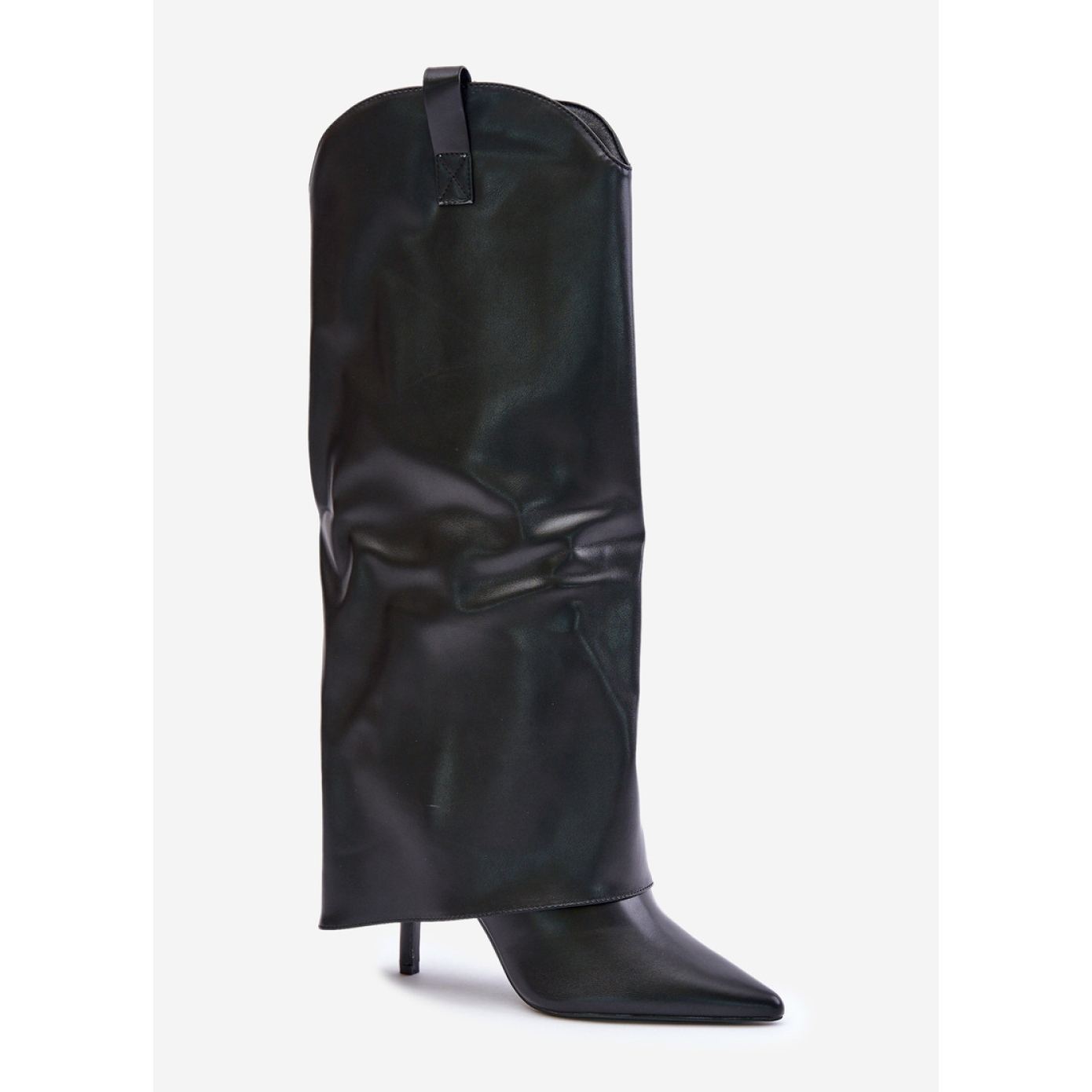 Boots Model 35858 Black on täydellinen valinta naisille, jotka haluavat yhdistää eleganssin mukavuuteen. Nämä mustan laadun ekologisen nahkaisen ilahdutuksen valmistetut mustat saappaat, jotka ovat tehokkaasti kantapäässä, antavat koko tyylistylle ainutlaatuisen hahmon. Spitzin nenät lisäävät tyyliä ja luokkaa kenkiin, mikä tekee niistä loistavan aksentin sekä jokapäiväisessä että muodollisemmissa asuissa.