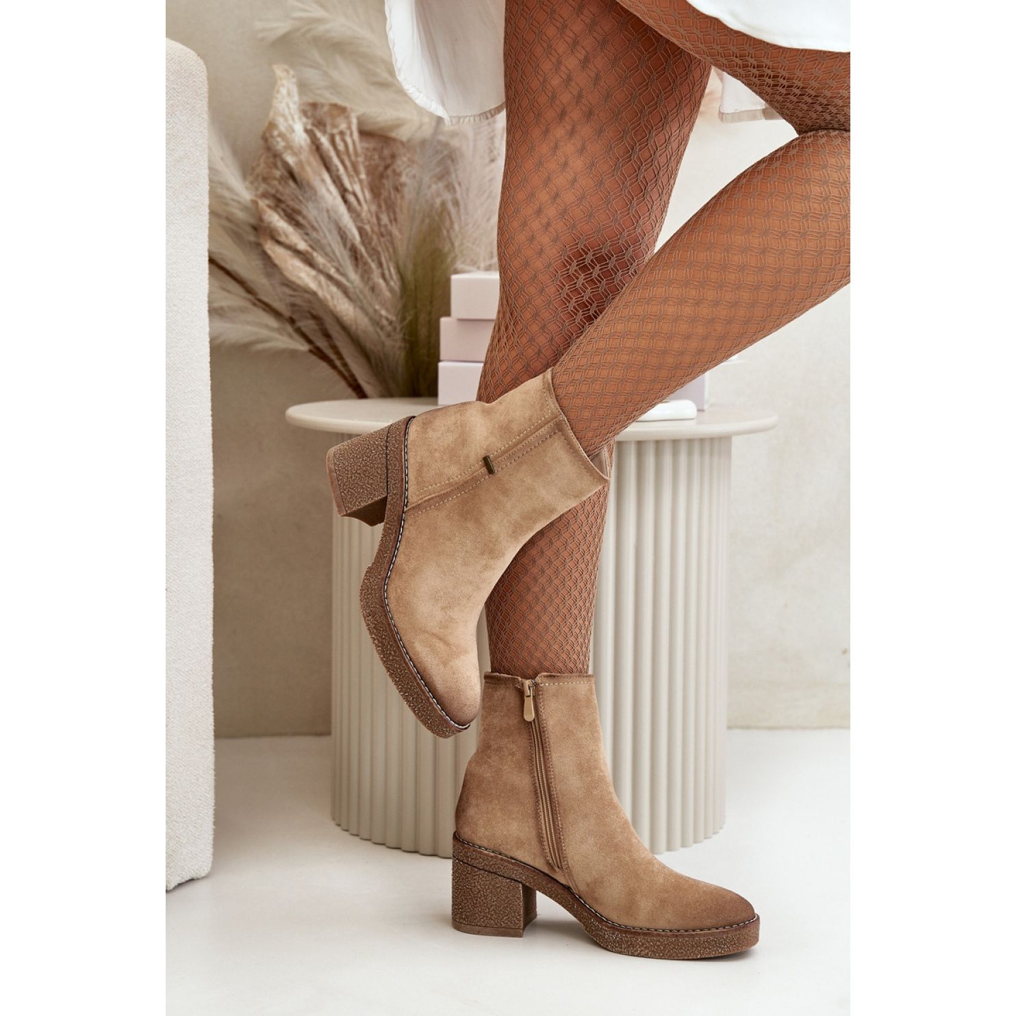 Vakaa kantapää 7,5 cm: n korkean männän muodossa nostaa hahmon ja tarjoaa mukavuuden samalla kun pukeutuu. Huomaavan suunnittelun ansiosta he ovat joka päivä ihanteellinen seuralainen - sekä töihin että tapaamisiin ystävien kanssa. Saappasten sisustus on eristetty jalkineiden viltillä, mikä tekee niistä kietouttamaan jalkansa miellyttävästi jopa viileämpinä päivinä suojaamalla niitä kylmältä.