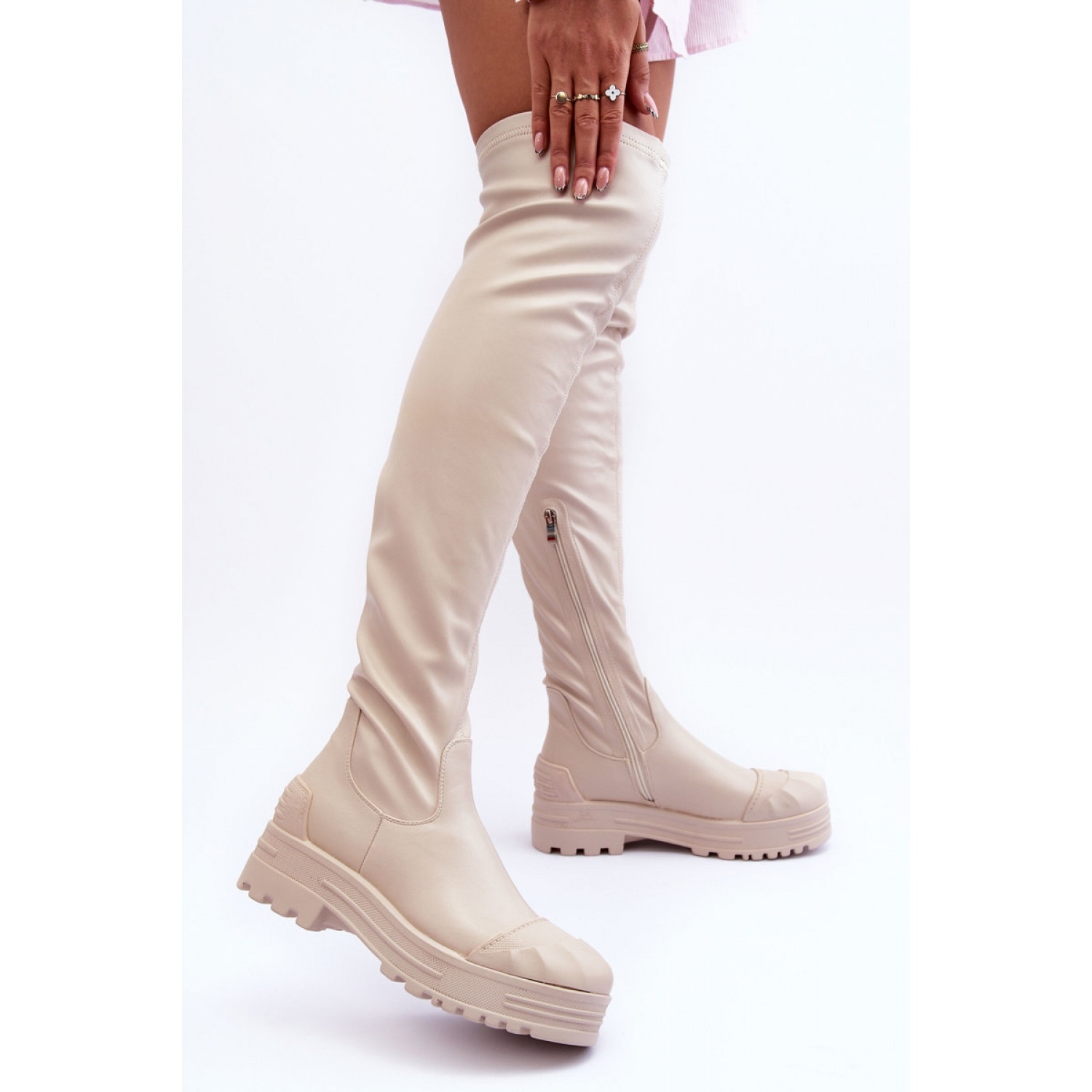 Löydä eleganssi ja mukavuus keikarissa 15863 korkeita saappaita kauniissa beige -sävyssä, askel tyylikkäissä. Nämä tyylikkäät saappaat, jotka ulottuvat polven yli