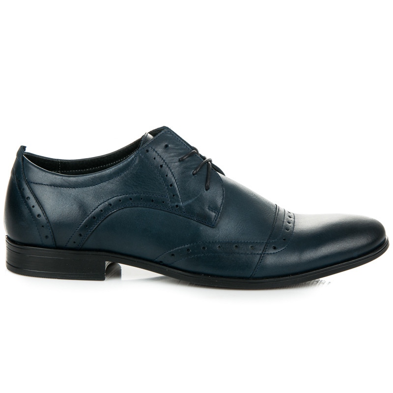 Lucca Brogs - tyylikkäät miesten kengät tummansinisessä sävyssä, jotka ovat täydellisiä ympäri vuoden. Luonnonnahasta valmistetut ne yhdistävät klassisen muodon universaaliin, alkuperäiseen väriin - täydellinen pukuun, smokkiin tai eleganttiin arkeen.