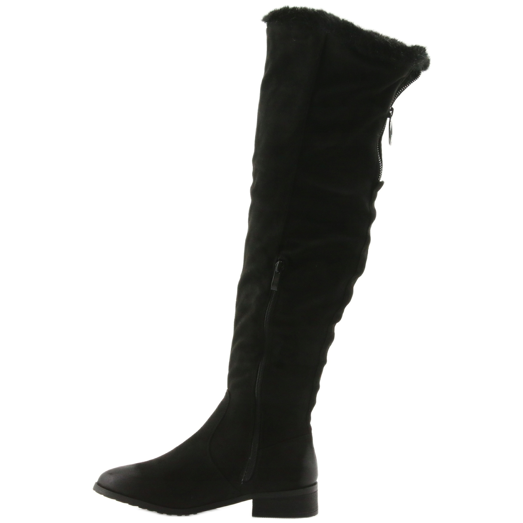 Saappaat on asetettu 3 cm korkealle tasaiselle kantapäälle, joka lisää muutaman senttimetrin korkeutta ja muotoilee täydellisesti jalat. Klassisen leikkauksen ja hillityn mustan värinsä ansiosta nämä saappaat sopivat täydellisesti sekä arki- että tyylikkäämpiin tyyleihin.