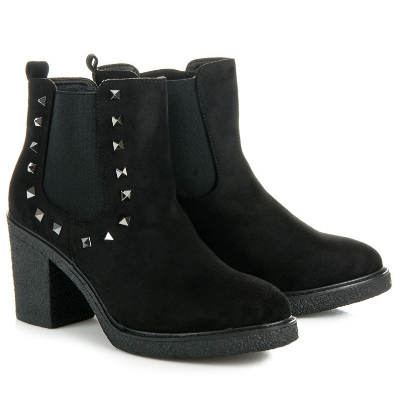 Hallitseva kuvio on klassinen musta, jota täydentävät huomiota herättävät nepparit, jotka antavat kengille ainutlaatuisen luonteen. Slip-on-kiinnityksellä varustetut nilkkurit tekevät kenkien pukemisesta ja riisumisesta erittäin helppoa ja kätevää.