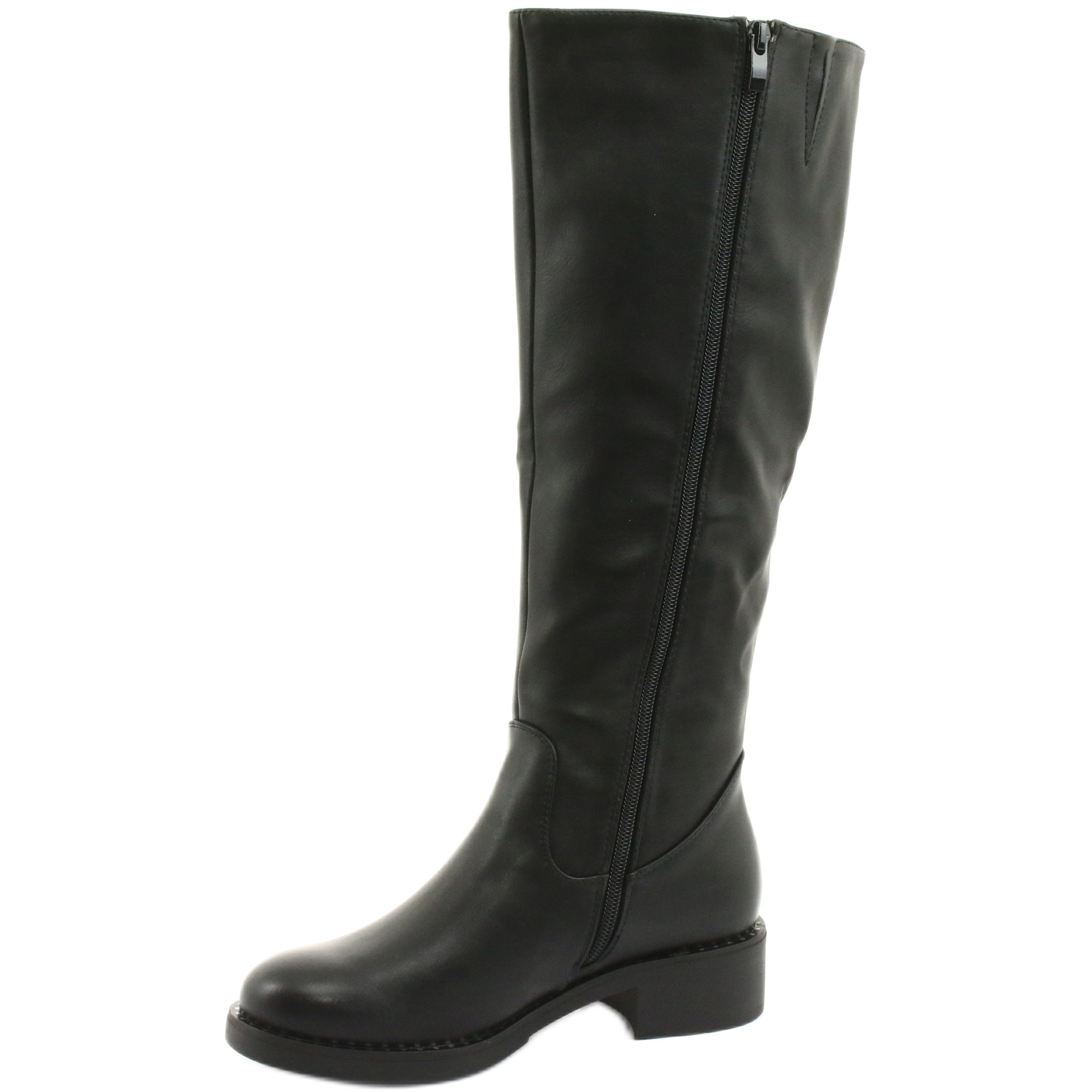 Mustat Sergio Leone 280 -saappaat paksulla pohjalla ovat ihanteellinen valinta naisille, jotka haluavat yhdistää eleganssin ja mukavuuden. Nämä korkealaatuisesta ekologisesta nahasta valmistetut saappaat erottuvat tyylikkäästä päälliköstä, joka antaa niille ainutlaatuisen luonteen. Pehmeällä turkilla eristetyt ne tarjoavat miellyttävää lämpöä myös kylminä päivinä.
