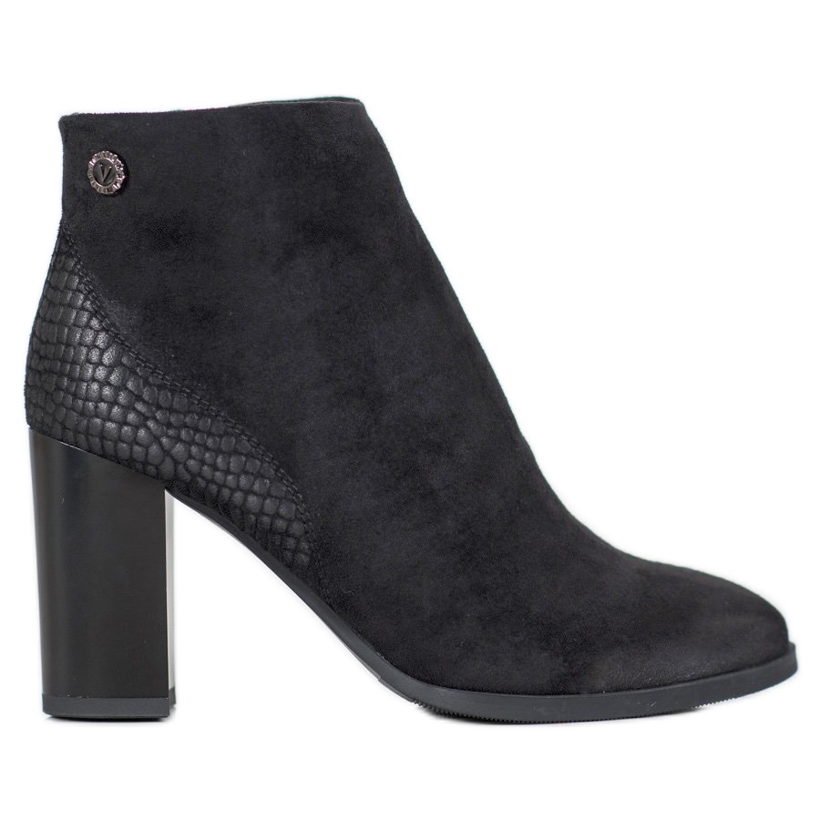 Goodinin mustat korkeakorkoiset nilkkurit ovat täydellinen valinta jokaiselle modernille naiselle, joka arvostaa tyyliä ja mukavuutta. Nilkkapituiset jalkineet erottuvat tyylikkäästä muotoilustaan ja käytännöllisyydestään. Laadukkaasta ekologisesta nahasta valmistetut saappaat kiinnittävät varmasti huomiota sileän etuosan ja hienovaraisen kantapäänsä ansiosta, jossa on käärmeen ihoa jäljittelevä kohokuviointi, joka antaa niille ainutlaatuisen luonteen.