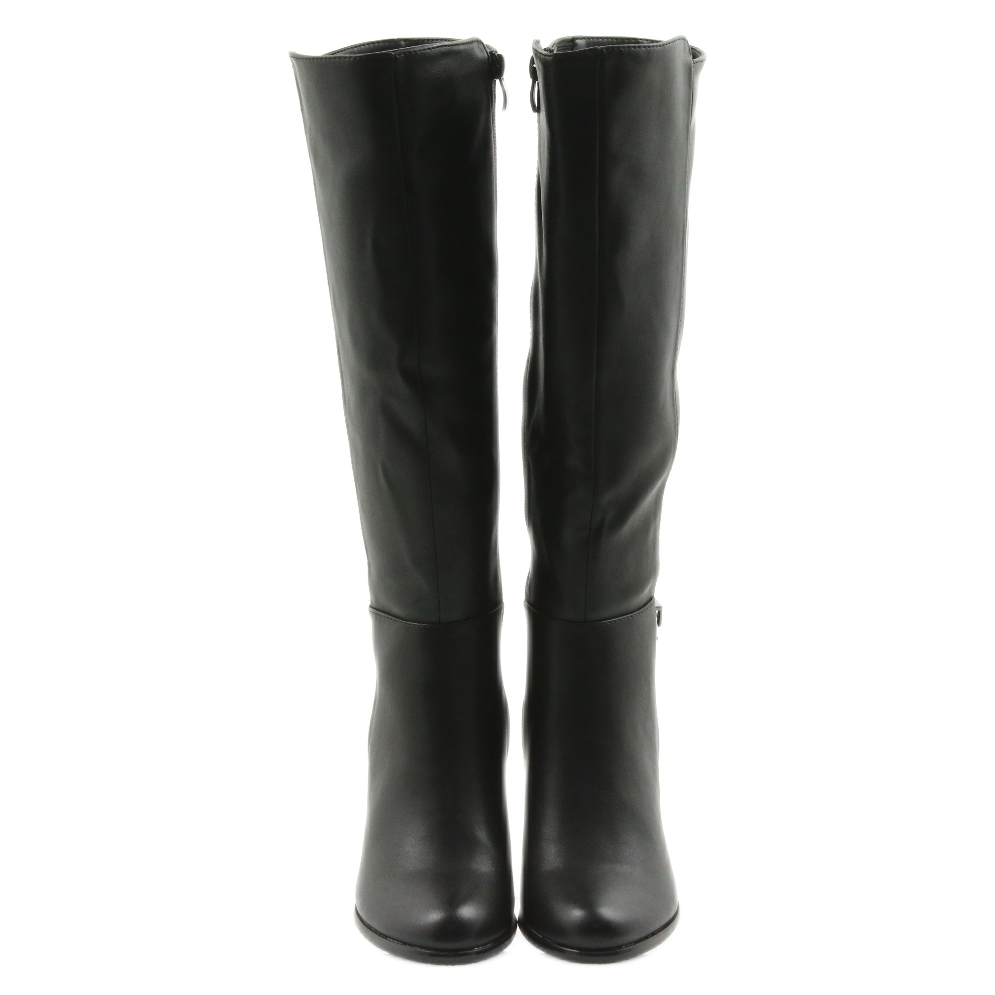 Sergio Leonen mustat korkeakorkoiset saappaat ovat täydellinen valinta eleganssia ja mukavuutta arvostaville naisille. Malli 290 erottuu klassisesta leikkauksesta, joka sopii täydellisesti viimeisimpiin muotitrendeihin. Valmistettu korkealaatuisesta ekologisesta nahasta, ne näyttävät vaikuttavilta ja tyylikkäiltä.