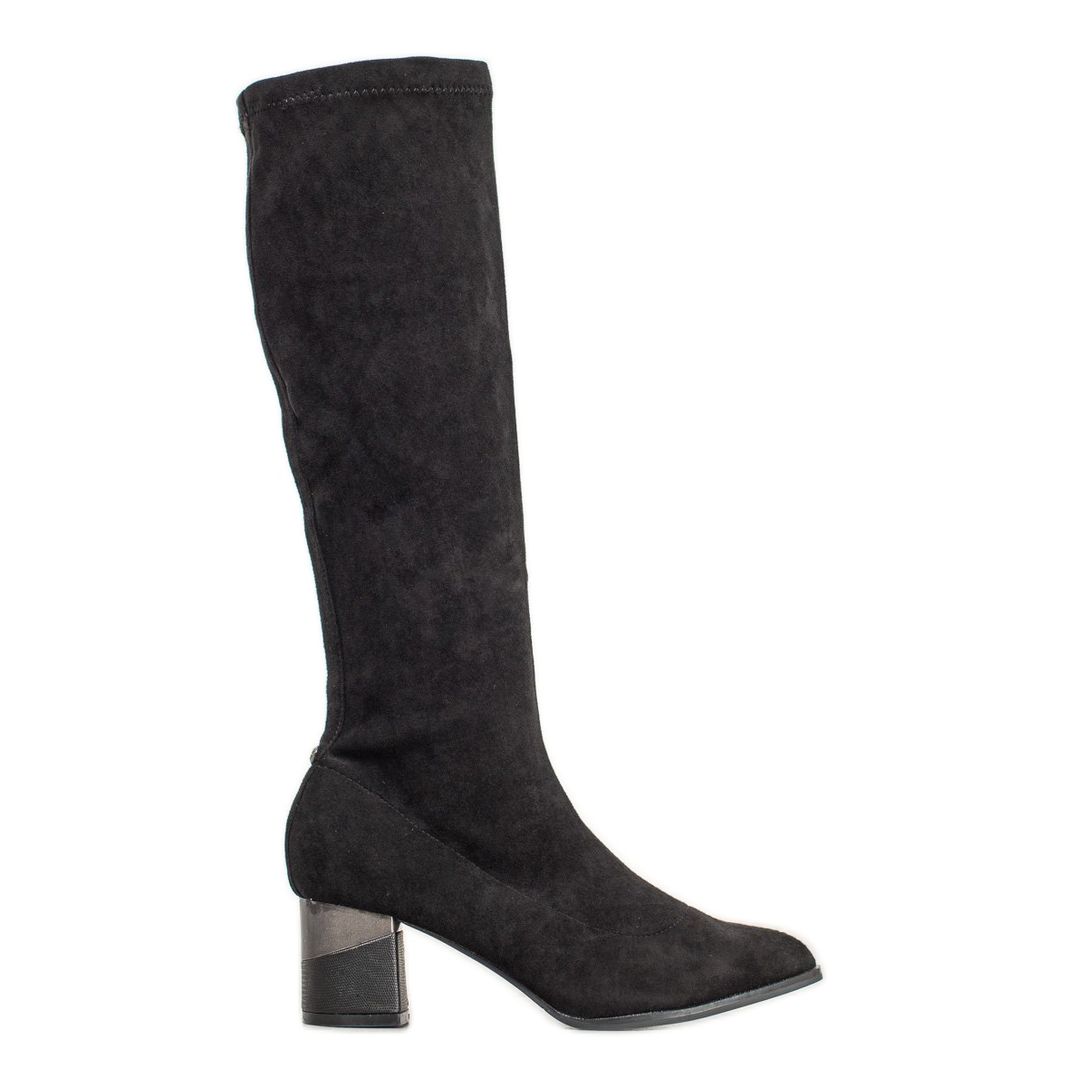 Mustat Aclys-saappaat täydentävät täydellisesti sekä klassisia että avantgarde-tyylejä. Kuvion puutteen ansiosta ne on helppo yhdistää erilaisiin asuihin - tyylikkäästä mekosta rennon farkkuihin.