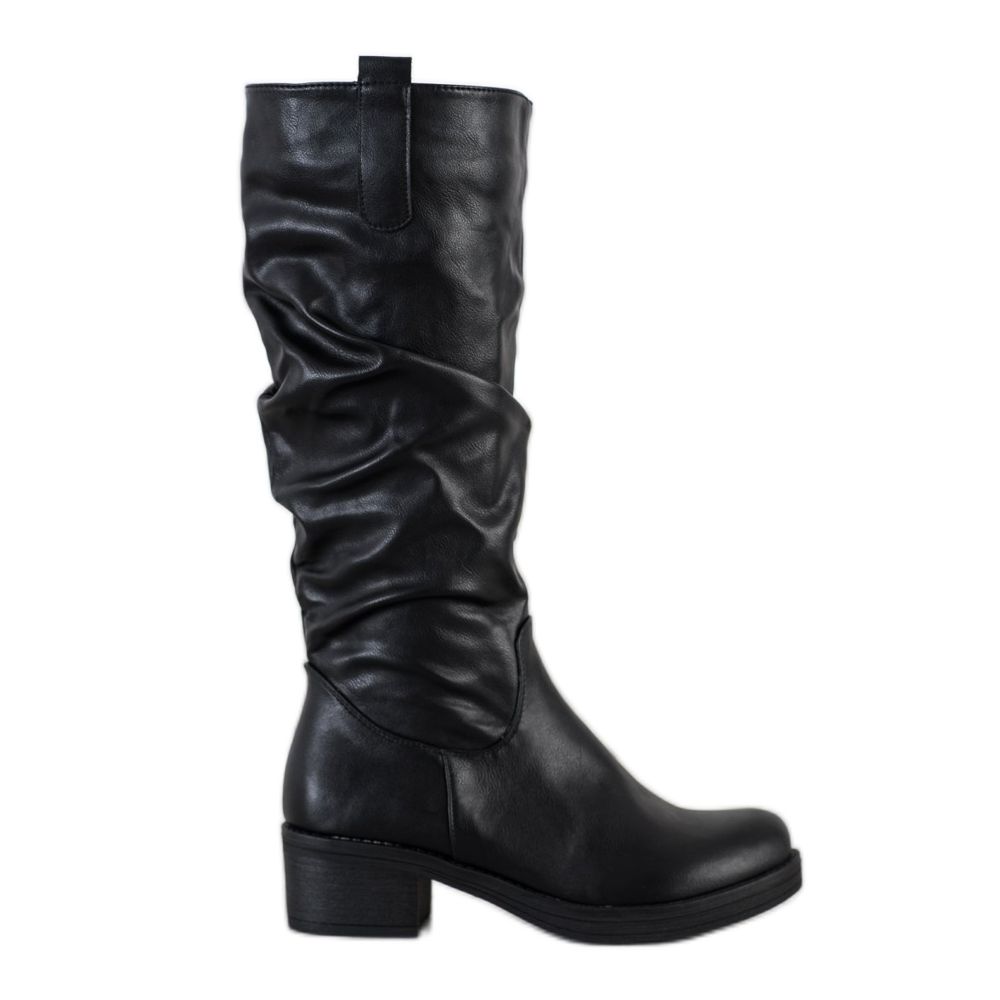 Nämä kengät ovat yhdistelmä klassista eleganssia ja alkuperäistä muotoilua. Ryppyinen päällinen antaa niille ainutlaatuisen luonteen ja tekee jalkineista omaperäisempiä. Polvikorkea päällinen suojaa kylmältä, ja hienovarainen tyylikorkeus on pieni, 5 senttimetrin kantapää, joka korostaa vartaloa rasittamatta jalkoja. Nämä jalkineet voidaan yhdistää onnistuneesti suosikkimekkosi tai -hameesi ja sukkahousuisi, mikä luo hienostuneen tyylin, joka sopii täydellisesti iltaretkiin.