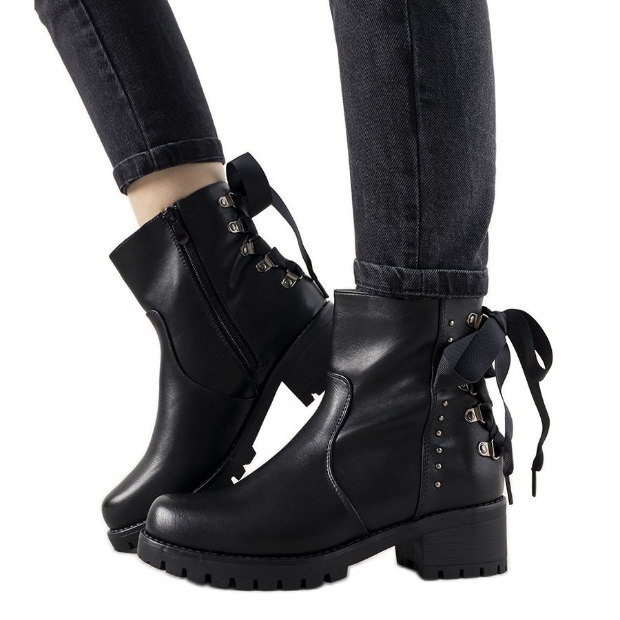 Yksityiskohdat: Sallin mustat saappaat, joissa on rusetti