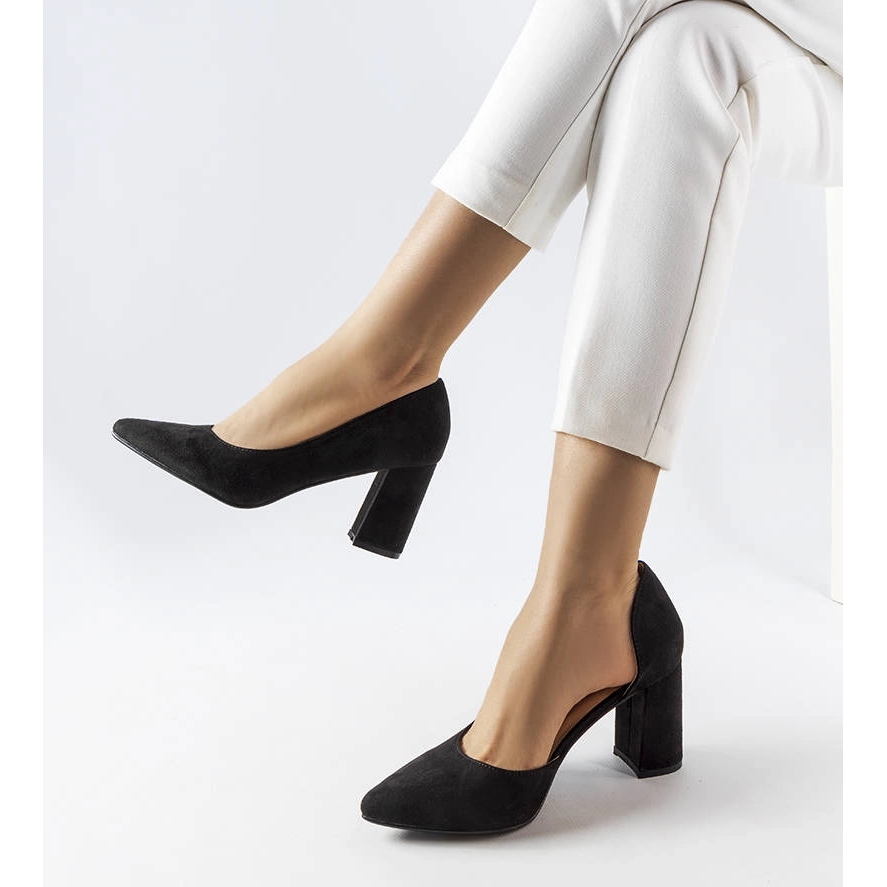 Mustat pumput Sargent Postissa (malli 2B1D5339-11) -Elegance Suede Edition. Klassiset, jumissa olevat pumput terävällä nenällä, joka on luotu kesätyylille, jossa tyyli yhdistyy vakauden kanssa.