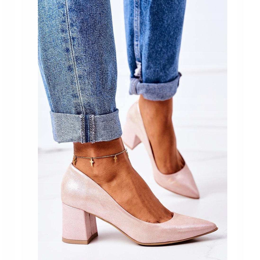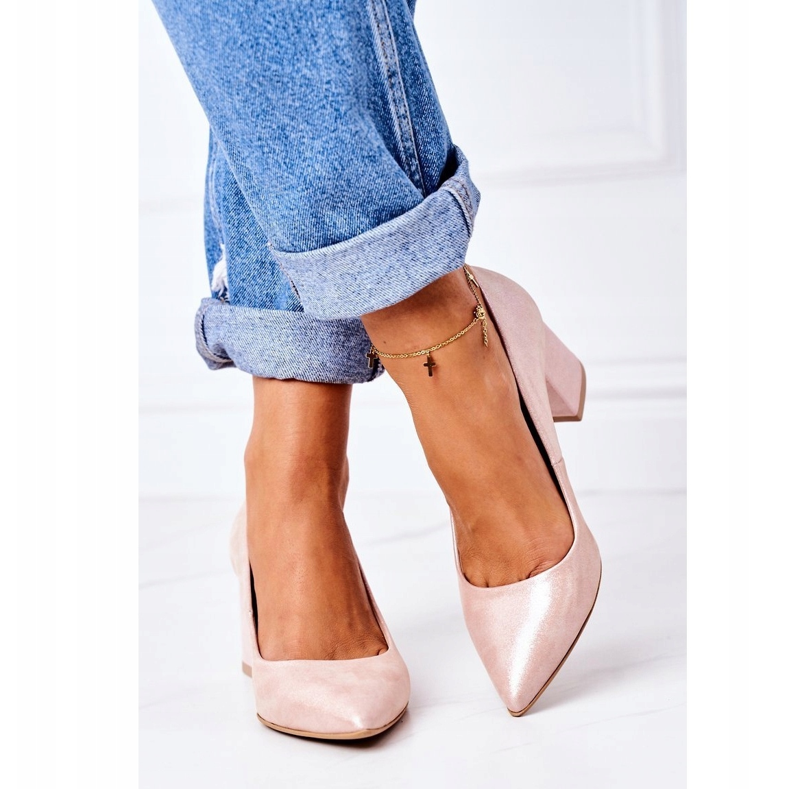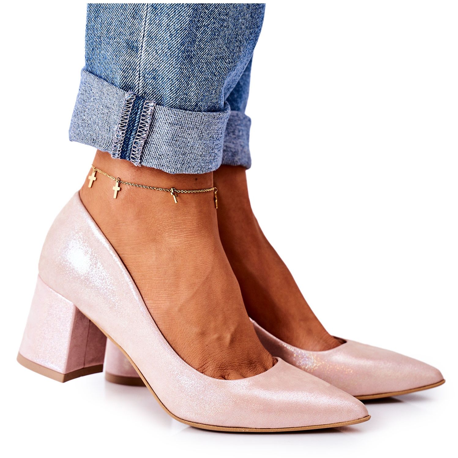 Nämä korkealaatuisesta luonnonnahasta valmistetut pumput kiinnittävät huomiota huolellisella viimeistelyllään ja yksityiskohtiin huomioivalla tavalla. Luonnonnahasta valmistettu pehmeä pohjallinen tarjoaa maksimaalisen mukavuuden ja tekee jokaisesta näissä kengissä vietetystä hetkestä nautinnon. Terävä kärki antaa niille tyylikkään luonteen, ja 6 cm korkea lohkokorko takaa vakauden ja käyttömukavuuden.