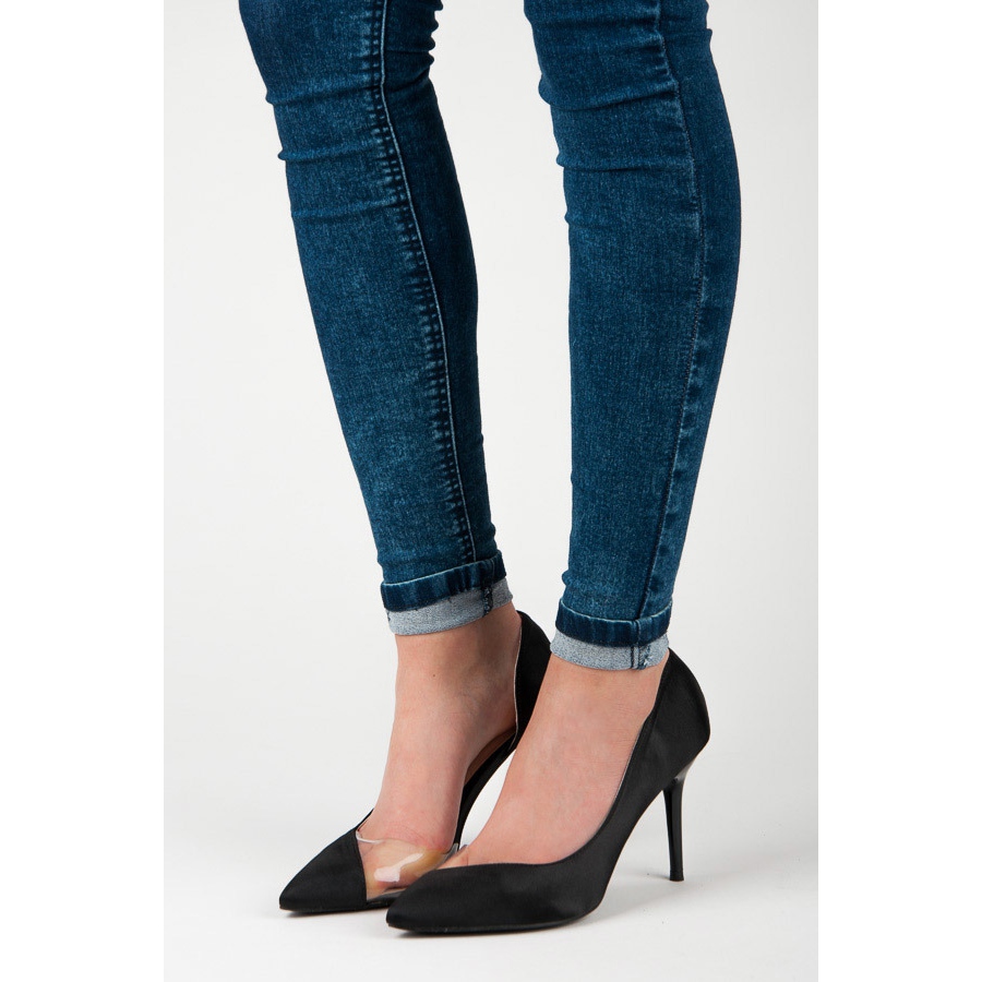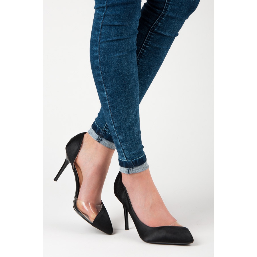 Löydä ainutlaatuinen tyyli satiinin läpinäkyvillä mustilla korkokengillä. Näissä eleganteissa korkokengissä yhdistyvät klassikko ja moderni muotoilu, mikä herättää huomion ainutlaatuisella läpinäkyvällä elementillä varpaassa. Ne näyttävät puoliksi leikatuilta, mikä antaa niille omaperäisyyttä ja saa jokaisen käyttäjän tuntemaan itsensä erityiseksi.