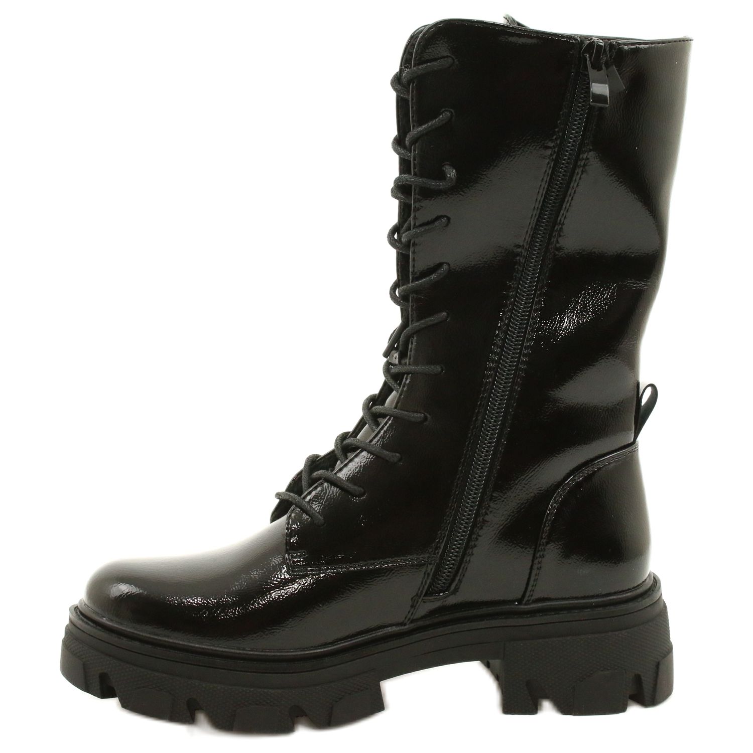 Korkeat saappaat Sergio Leone TR747 - Mustat lakatut saappaat turkista