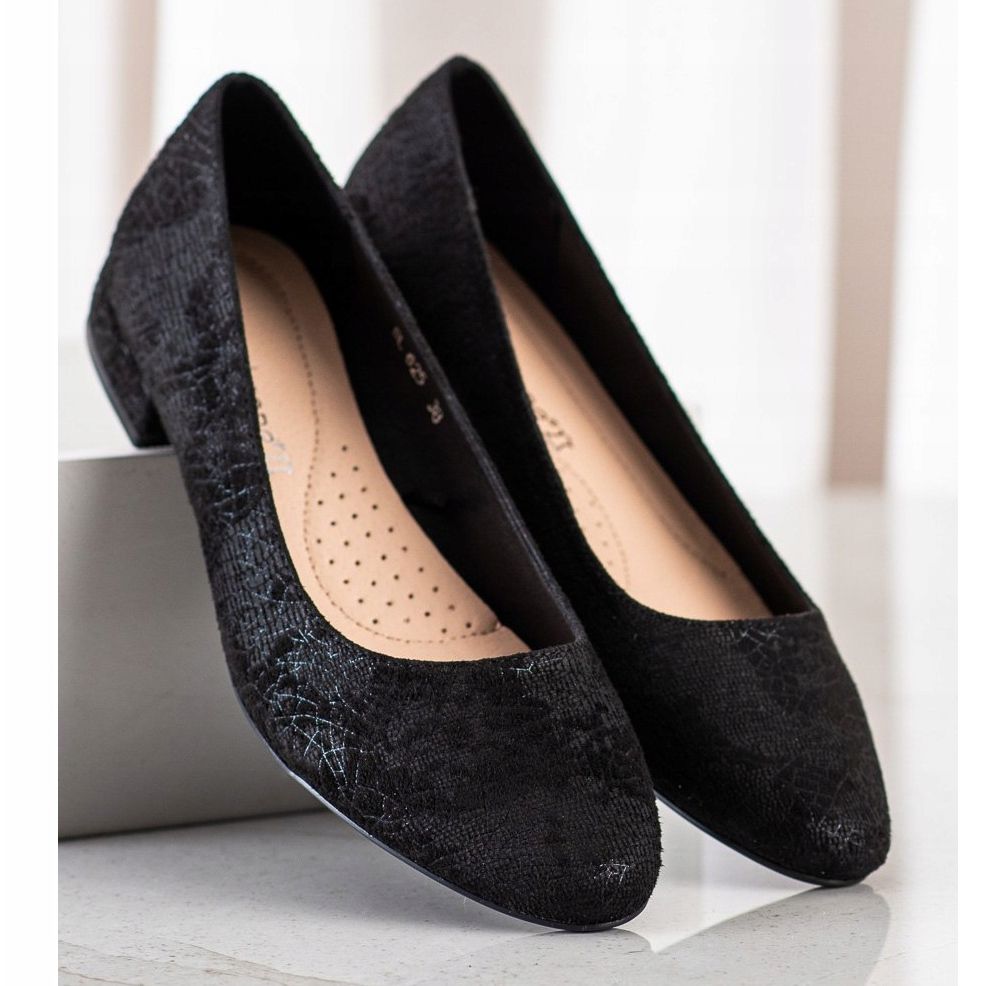 Jokainen nainen etsii jalkineita, joissa mukavuus yhdistyy klassiseen tyyliin. Sergio Leonen balettihuoneistot ovat täydellinen vastaus näihin tarpeisiin. Nämä ovat korkealaatuisesta ekologisesta nahasta valmistetut mustat, mokkanahkaa jäljittelevät samettiviimeistelyt, jotka lisäävät tyylikkyyttä mihin tahansa asuun.