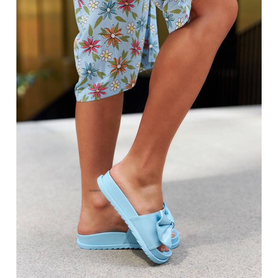 Esittelemme siniset varvastossut Serviglianon rusetilla, jotka täydentävät täydellisesti kaikki kesätyylit. Nämä tyylikkäät ja mukavat varvastossut, jotka on luotu naisia ajatellen, erottuvat muodikkaasta muotoilustaan ja korkealaatuisesta työstään.