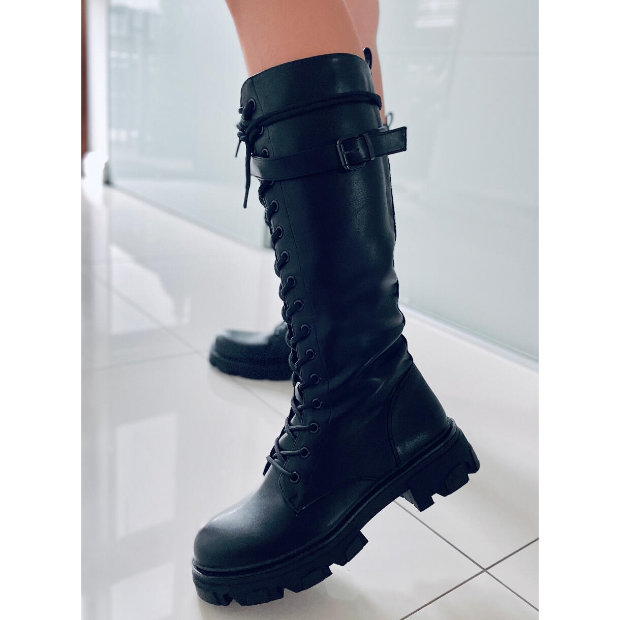 BM Shears Mustat naisten saappaat - Klassista eleganssia sotilaallisella otteella